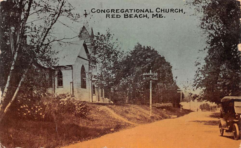 Red Beach Maine Congregational Church and Street Scene Vintage Postcard AA78426