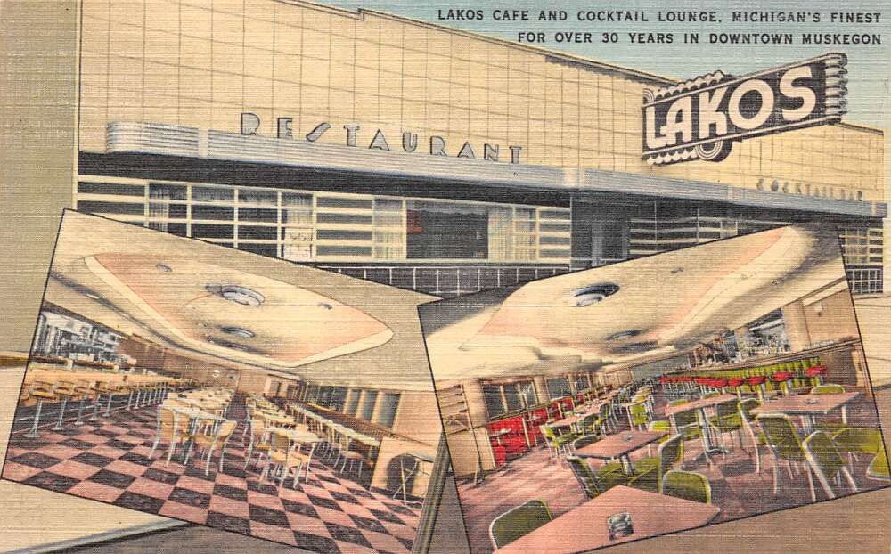 Muskegon Michigan Lakos Cafe Cocktail Lounge Vintage Postcard AA111355