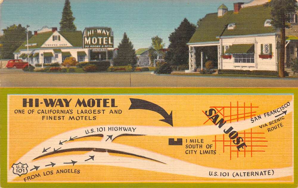 San Jose California Hi-Way Motel Linen Vintage Postcard AA111361