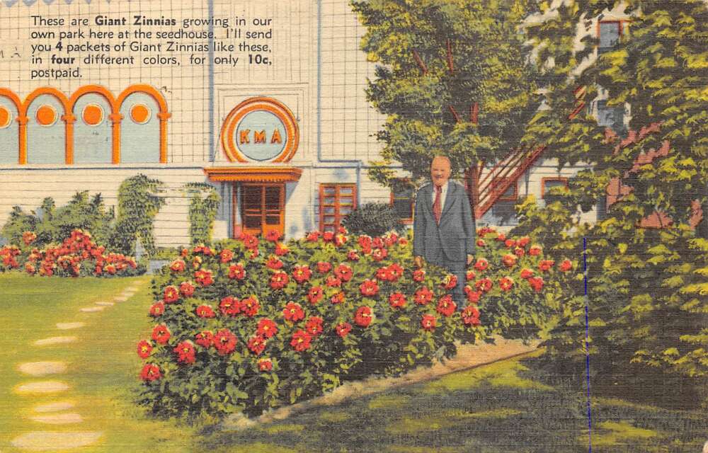 Shenandoah Iowa Earl E. May Seed Co., Giant Zinnias, Vintage Postcard U15921
