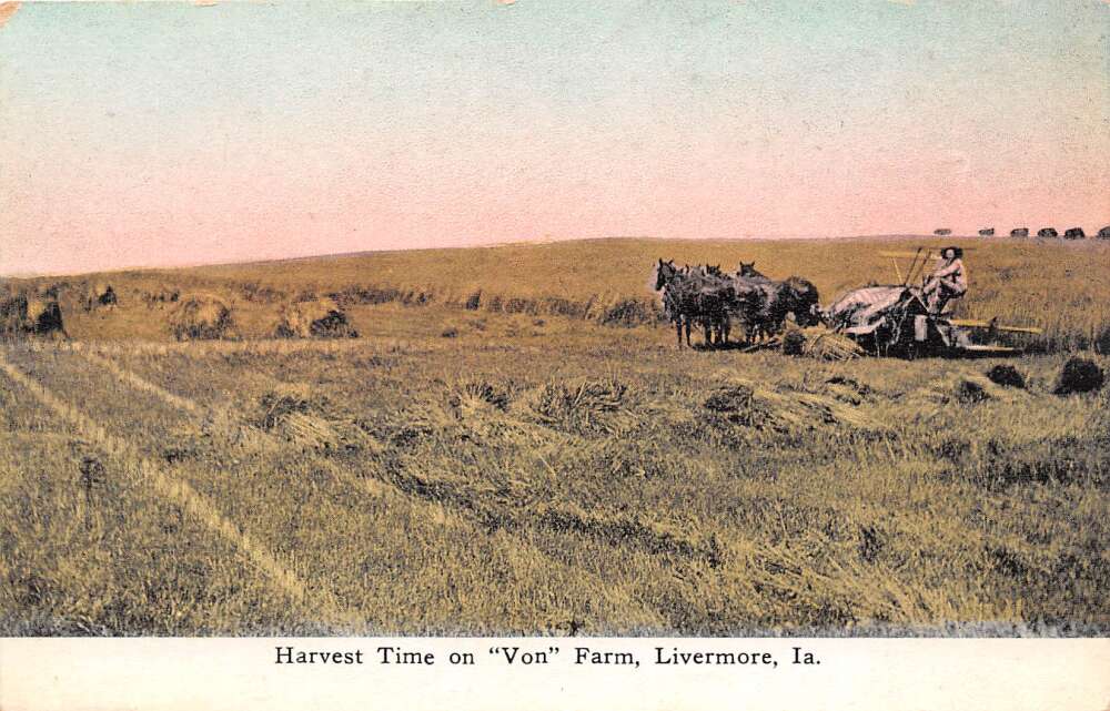Livermore Iowa Harvest Time, Von Farm, Color Lithograph Vintage Postcard U15922