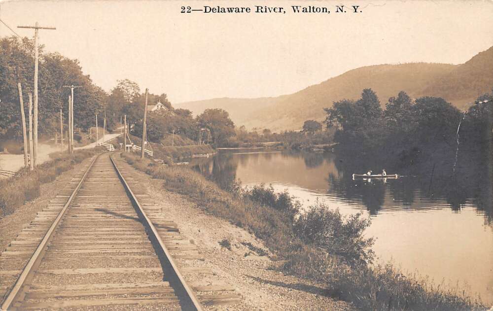 Walton New York Delaware River, Real Photo, Vintage Postcard U15924