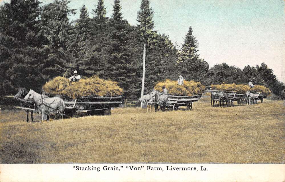 Livermore Iowa Stacking Grain, Von Farm, Color Lithograph Vintage PC U15930