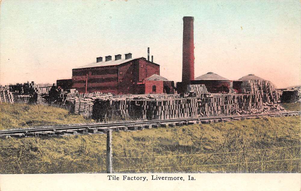 Livermore Iowa Tile Factory, Color Lithograph Vintage Postcard U15931