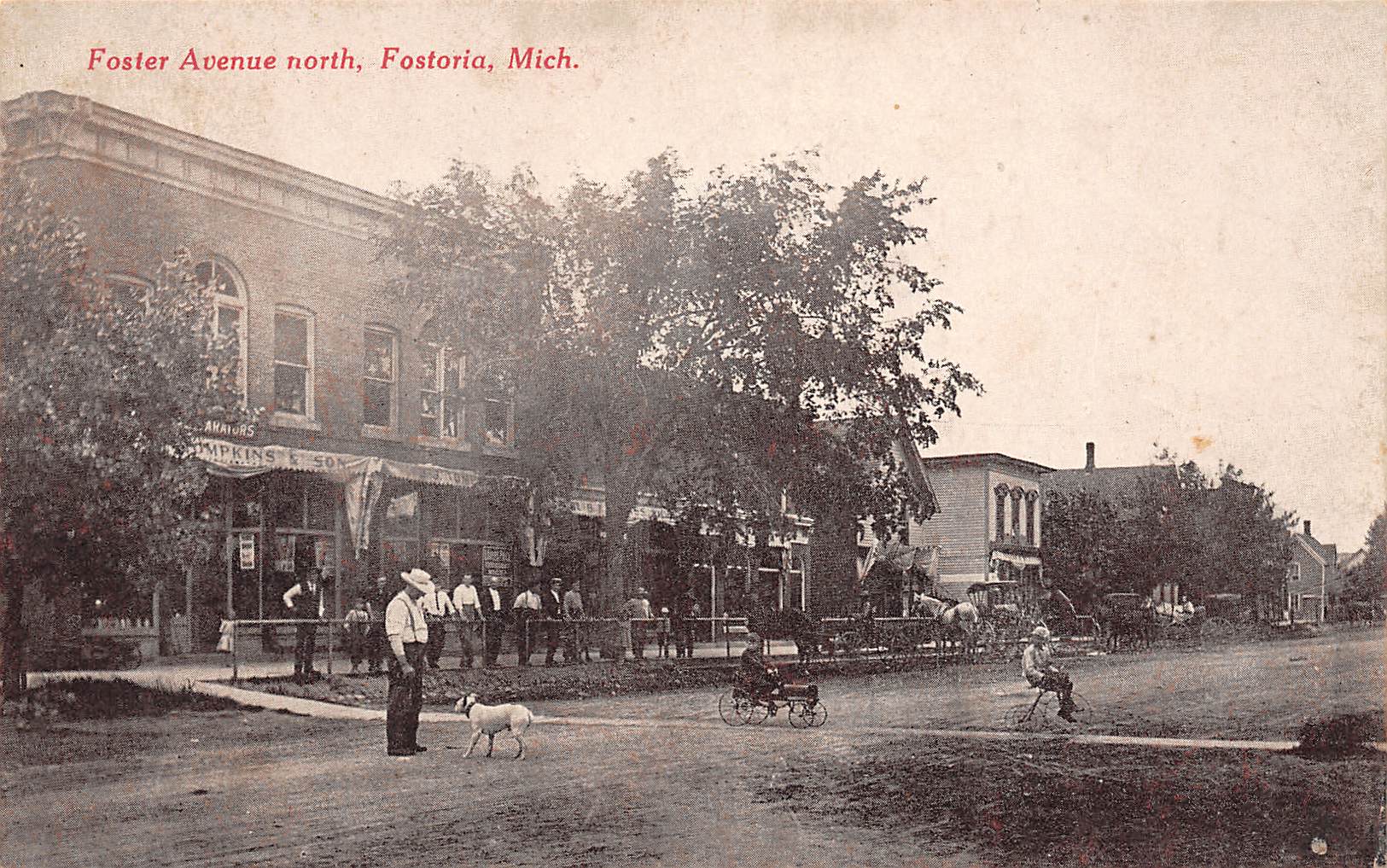 Fostoria Michigan Foster Ave. North, B/W Lithograph Vintage Postcard U15935
