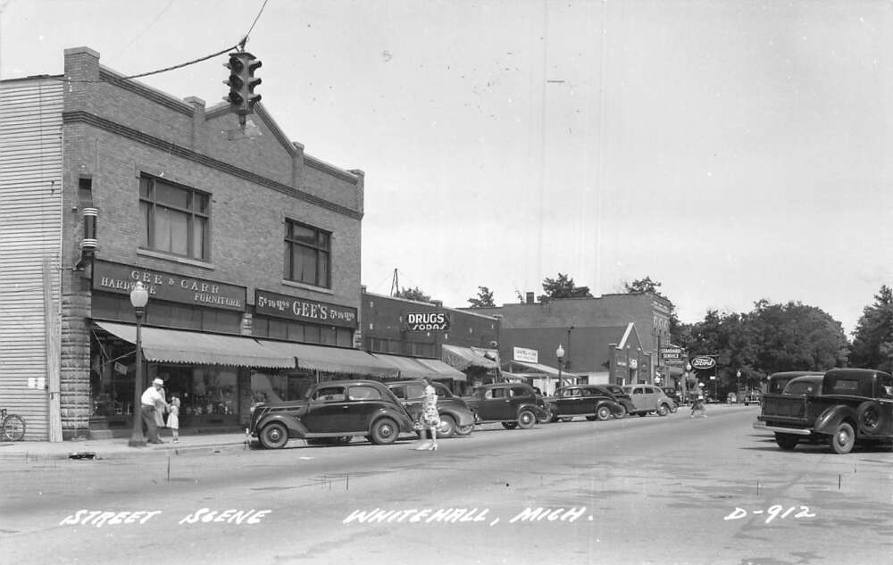 Whitehall Michigan Business District Street Scene Real Photo Postcard AA73340