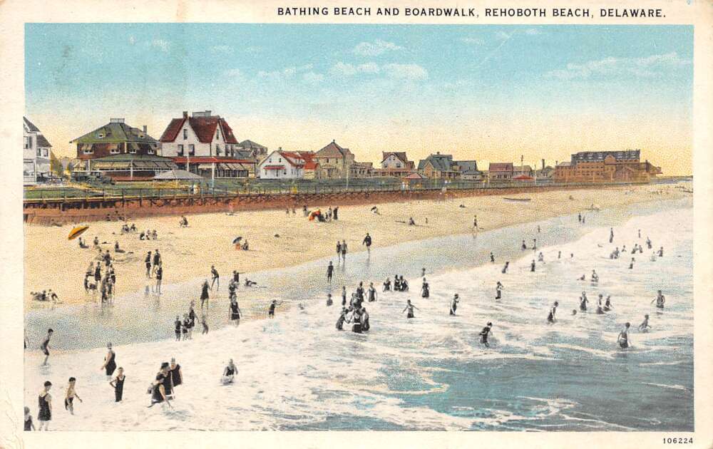 Rehoboth Beach Delaware Bathing Beach & Boardwalk, White Border, PC U12075