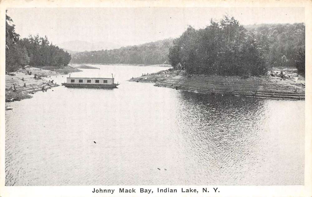 Indian Lake New York Johnny Mack Bay, B/W Photo Print Vintage Postcard U12078