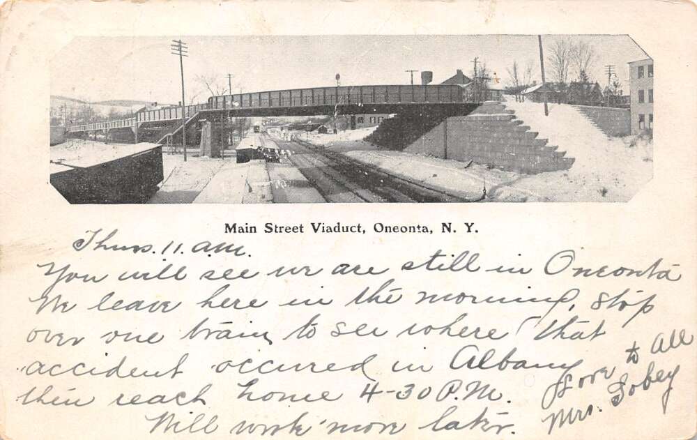Oneonta New York Main Street Viaduct, Undivided Back Vintage Postcard U12079