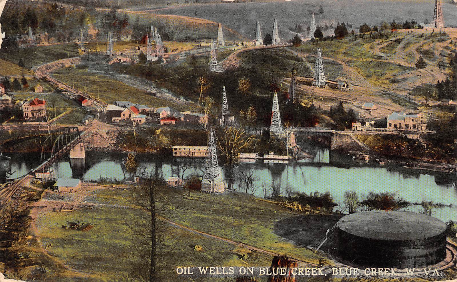 Blue Creek West Virginia Oil Wells On Blue Creek, Color Lithograph PC U12086