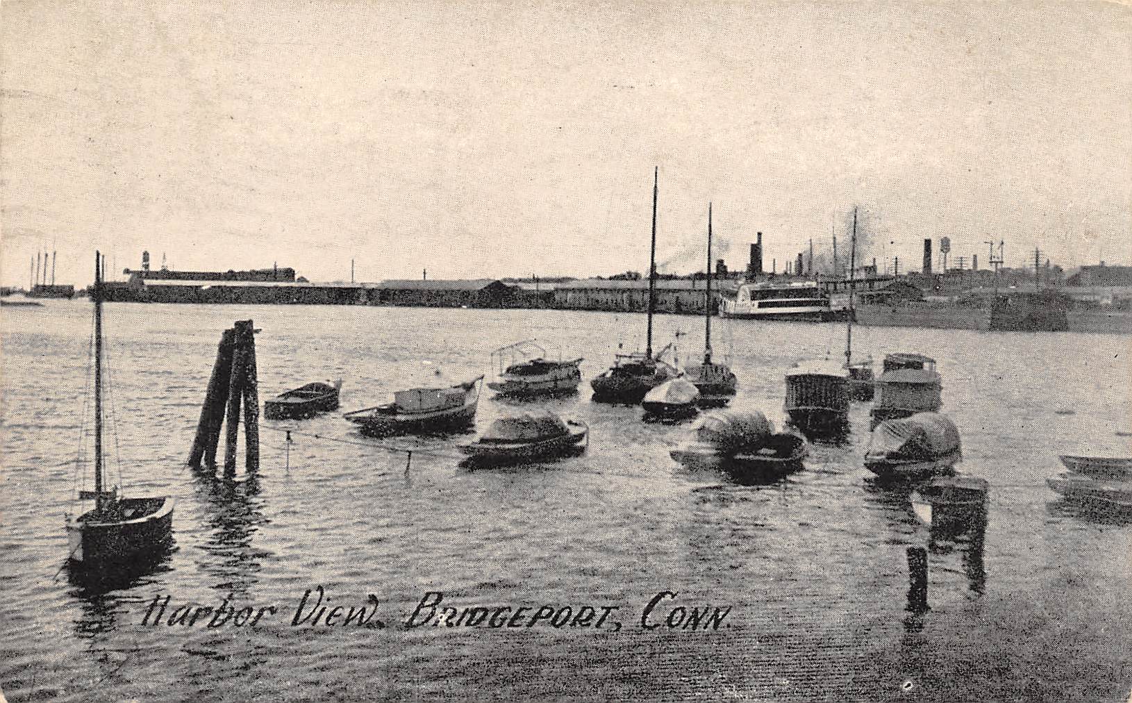 Bridgeport Connecticut Harbor View, B/W Photo Print Vintage Postcard U12087