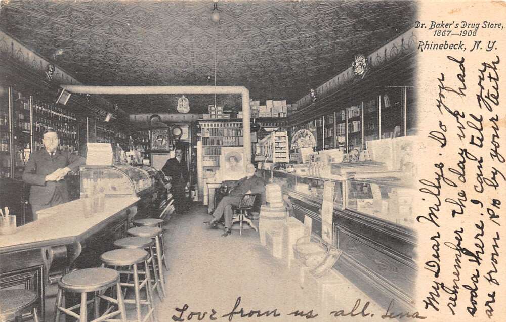 Rhinebeck New York Dr Bakers Drug Store Interior Vintage Postcard AA79009
