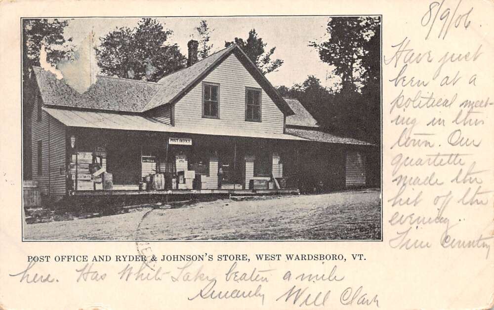 West Wardsboro Vermont Post Office and Ryder Johnsons Store Postcard AA73749