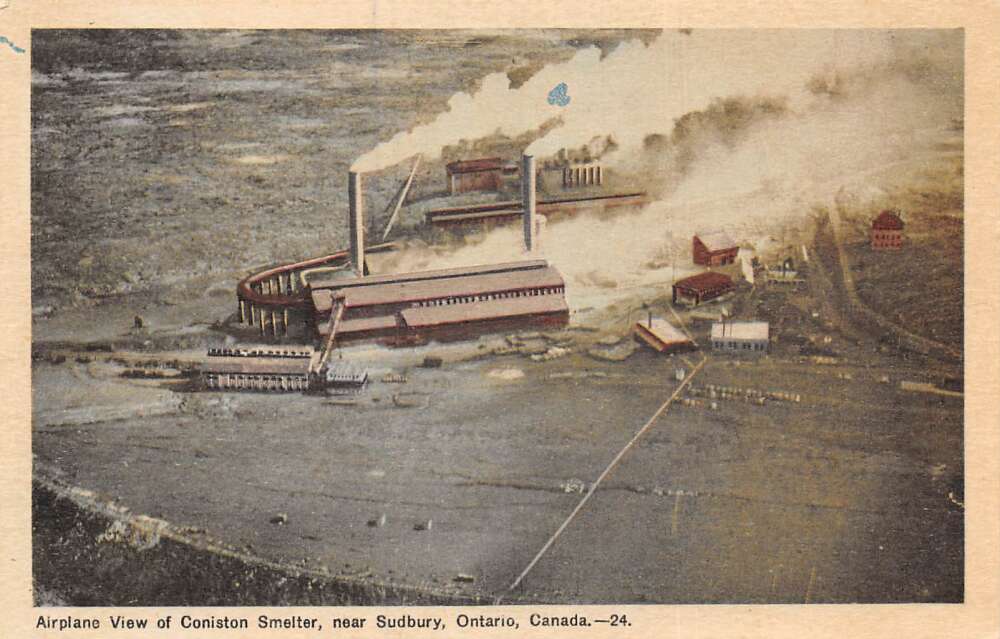 Sudbury Ontario Canada Coniston Smelter Aerial View Vintage Postcard AA73452