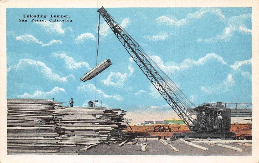 San Pedro California Unloading Lumber Vintage Postcard AA73453