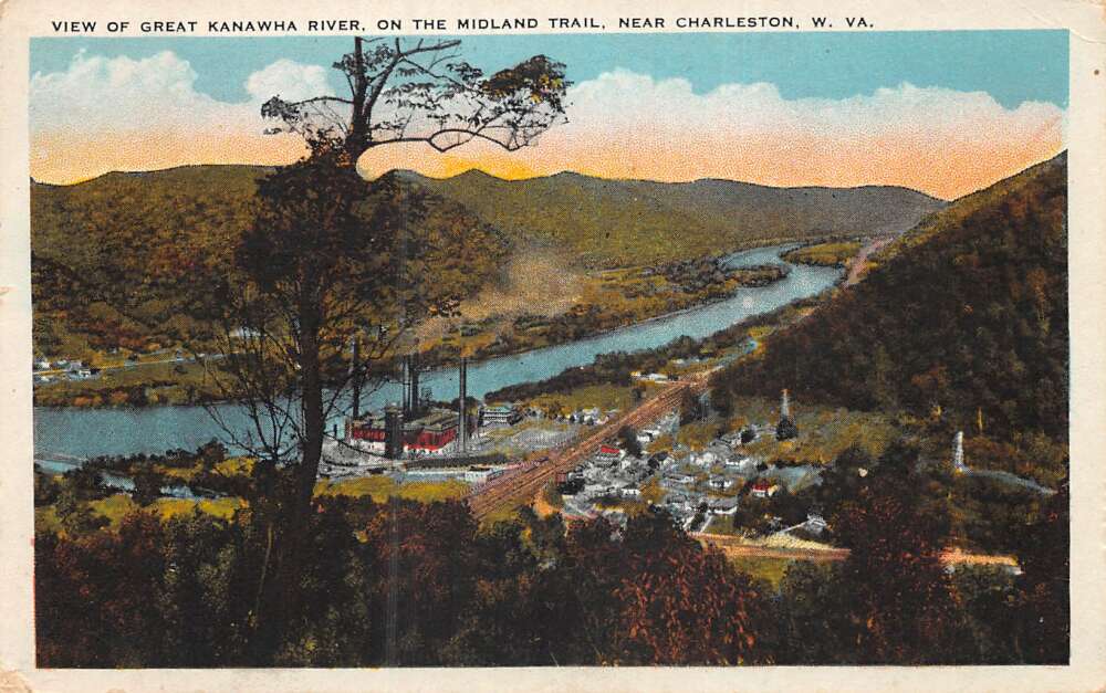 Charleston West Virginia Great Kanawha River on Midland Trail Postcard AA73460