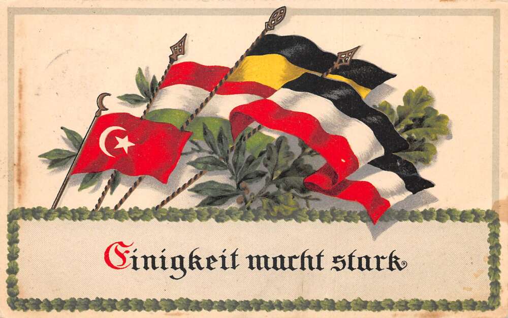 WW1 German Greetings Ottman Hungary Germany Flag Vintage Postcard AA77843