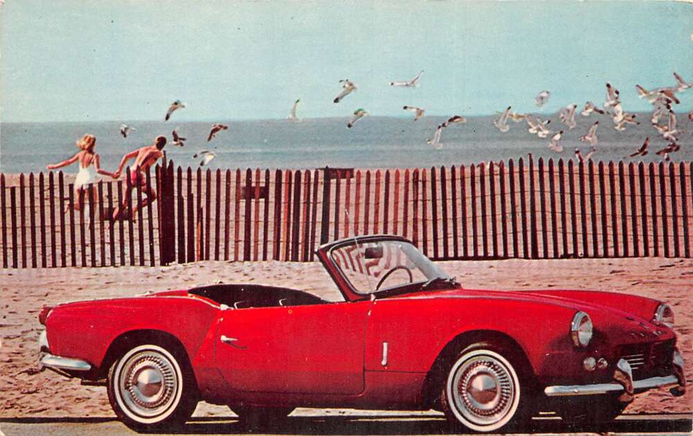 New Triumph Spitfire MK2 Car Advertising Beach Scene Vintage Postcard AA77845