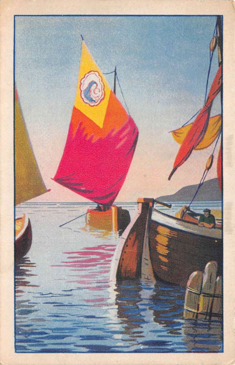Sailboats Harbor Scene Mary and Baby Jesus on Sail Religious Postcard AA77846