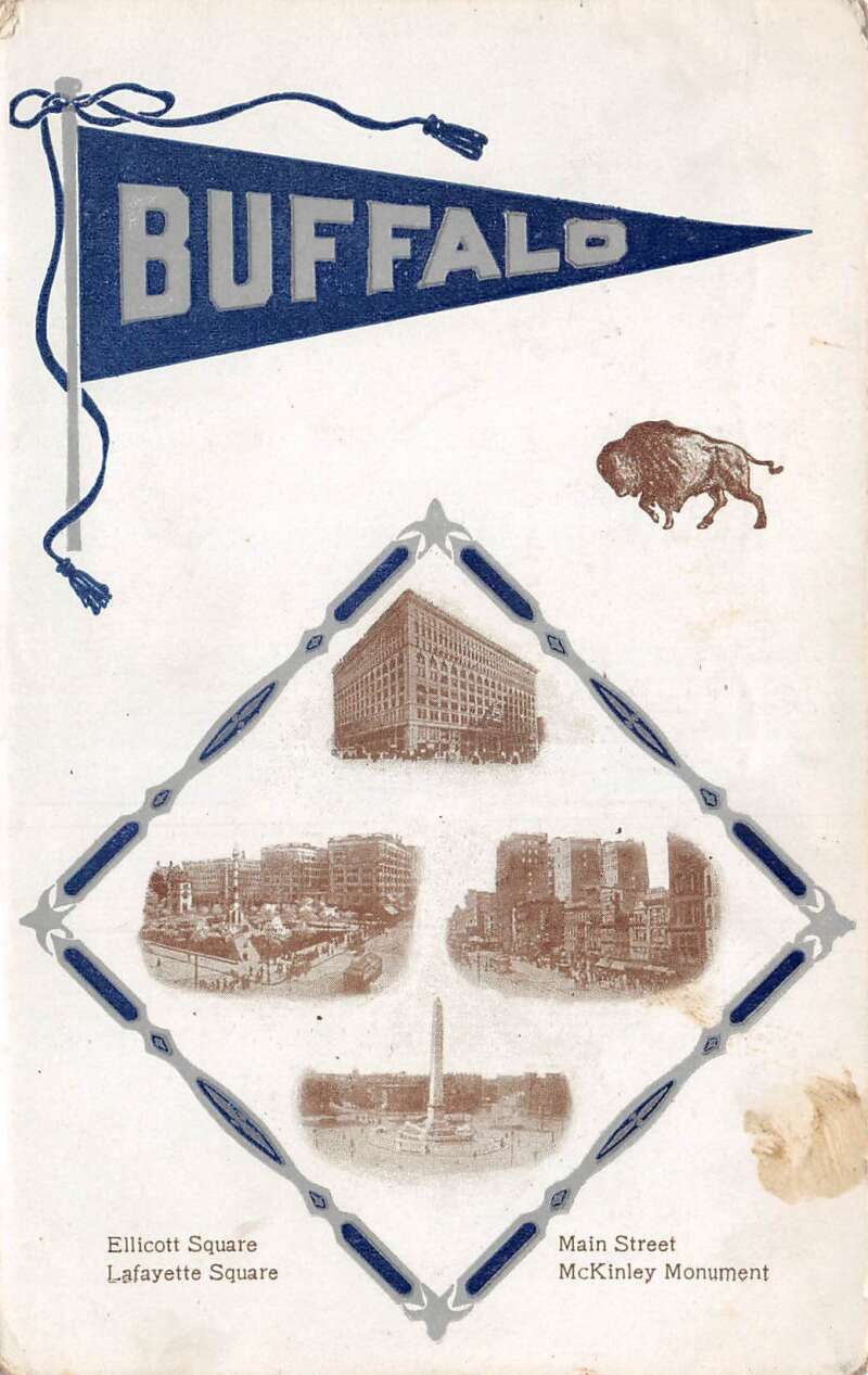 Buffalo New York Main Street Ellicott Square Greetings Pennant Postcard A107786