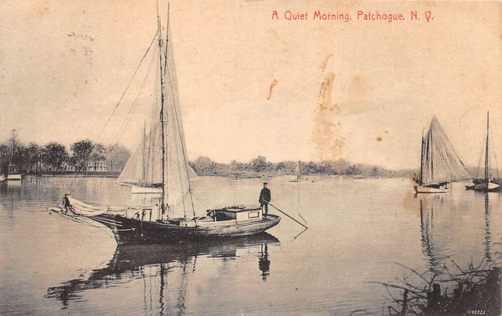 Patchogue New York Sailboats “A Quiet Morning” Vintage Postcard AA78274