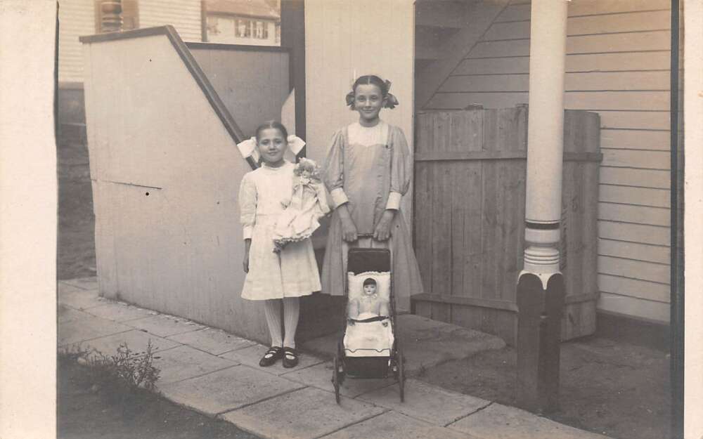 Girls with Baby Dolls and Stroller Real Photo Vintage Postcard AA78277