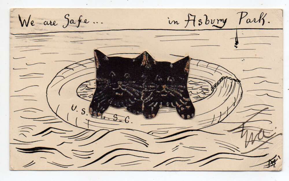 Asbury Park New Jersey Cats in Life Saver Hand Made Vintage Postcard AA78280