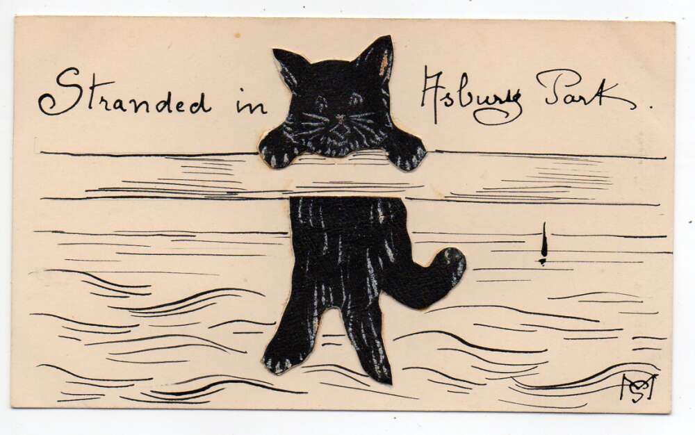 Asbury Park New Jersey Cat Hanging On Hand Made Vintage Postcard AA78281