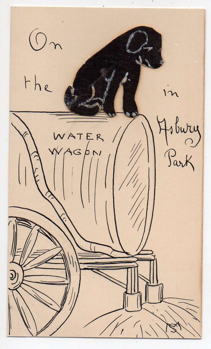 Asbury Park New Jersey Dog on Water Wagon Hand Made Vintage Postcard AA78282