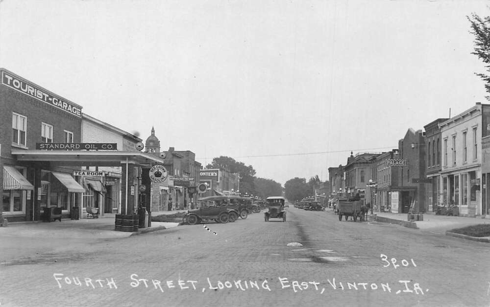 Vinton Iowa 4th Street Gas Station Looking East Real Photo Postcard AA108408