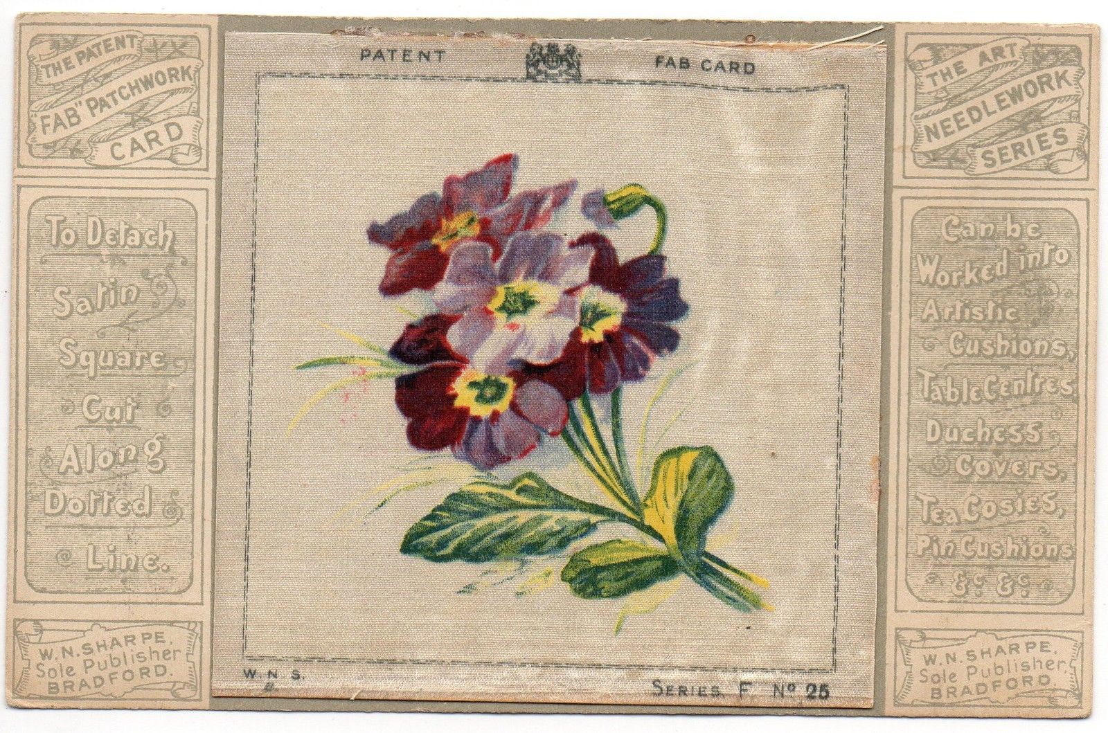 Flowers Needlework Patchwork Woven Silk Antique Postcard (J20260)
