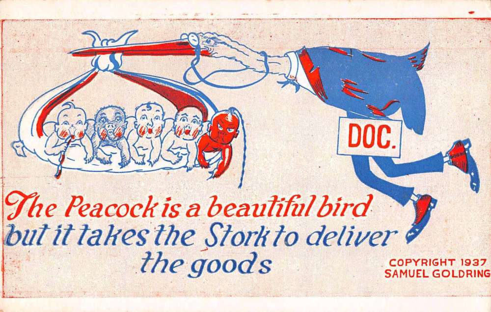 Stork Deliverying Babies Antique Postcard J79828