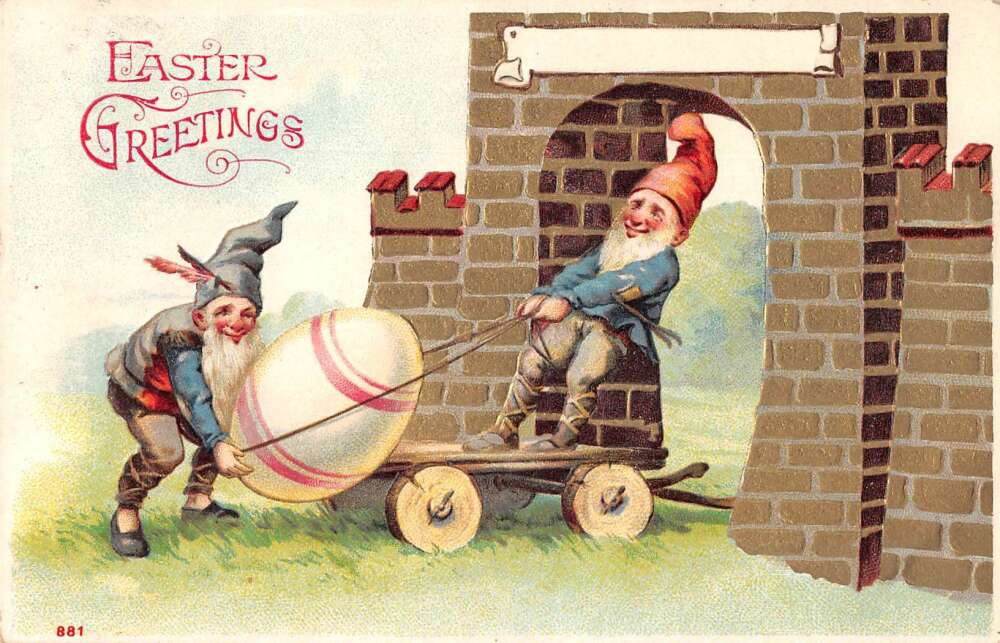 Easter Greetings French Gnome Elf Painting Egg Vintage Postcard AA38004