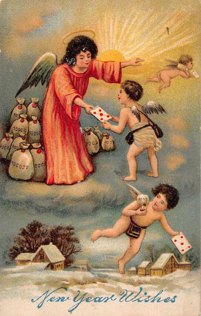 New Year Greetings Angels and Letters Vintage Postcard JD933484