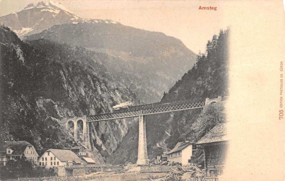 Amsteg Switzerland Train Bridge View Railroad Village Antique Postcard K11002