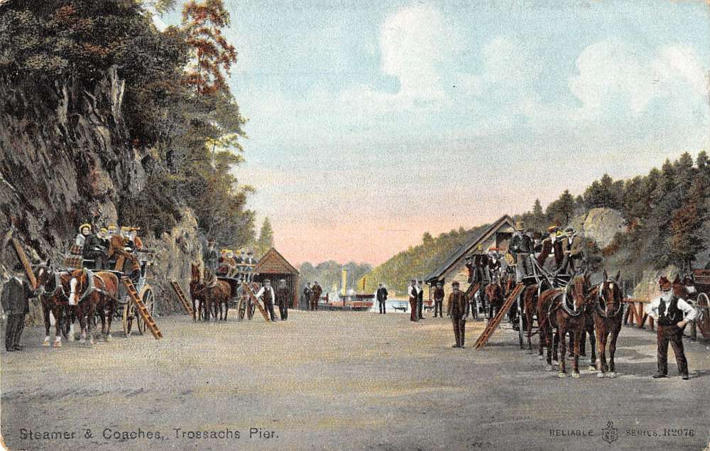 Steamer and Coaches in Trossachs Pier in Scotland Antique Postcard L810