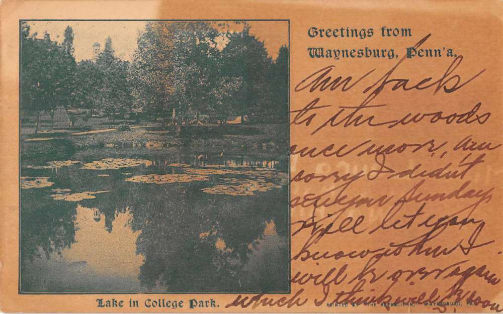 Waynesburg Pennsylvania College Park Lake Antique Postcard J50305