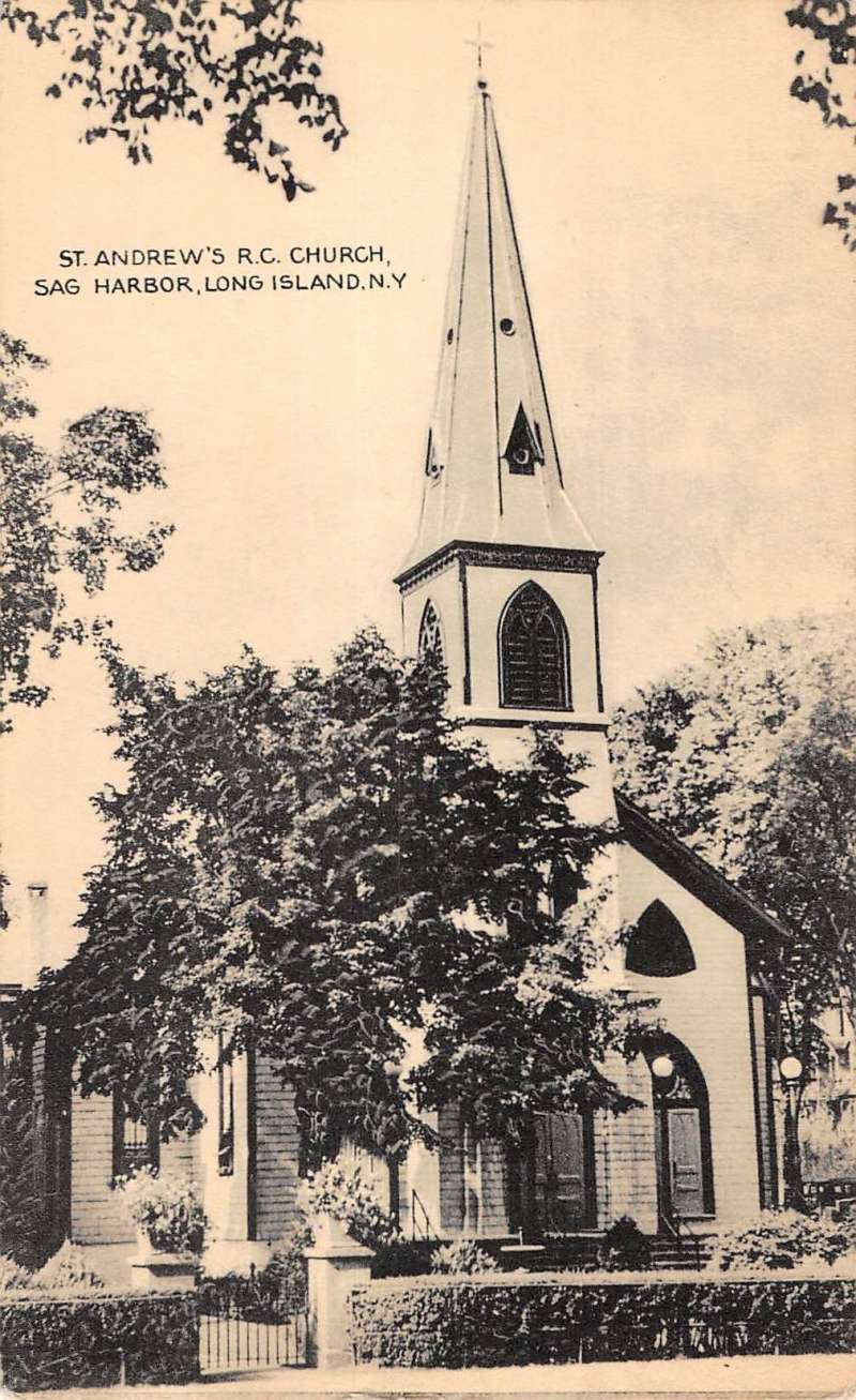 Sag Harbor New York St Andrews RC Church Street View Antique Postcard K72197