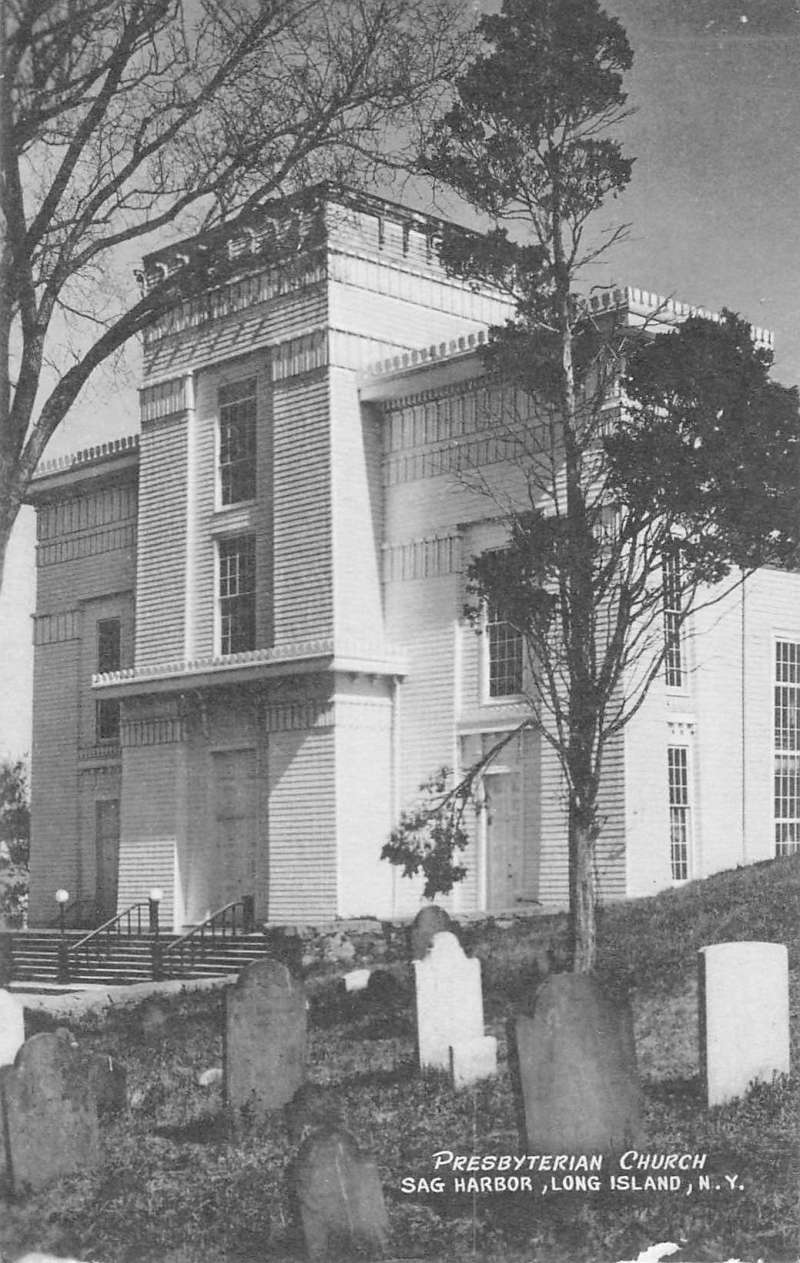 Sag Harbor New York Presbyterian Church Street View Antique Postcard K72198