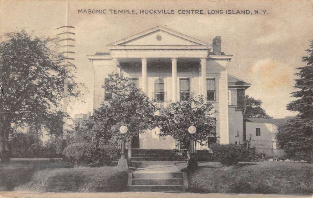 Rockville Centre New York Masonic Temple Street View Antique Postcard K72207