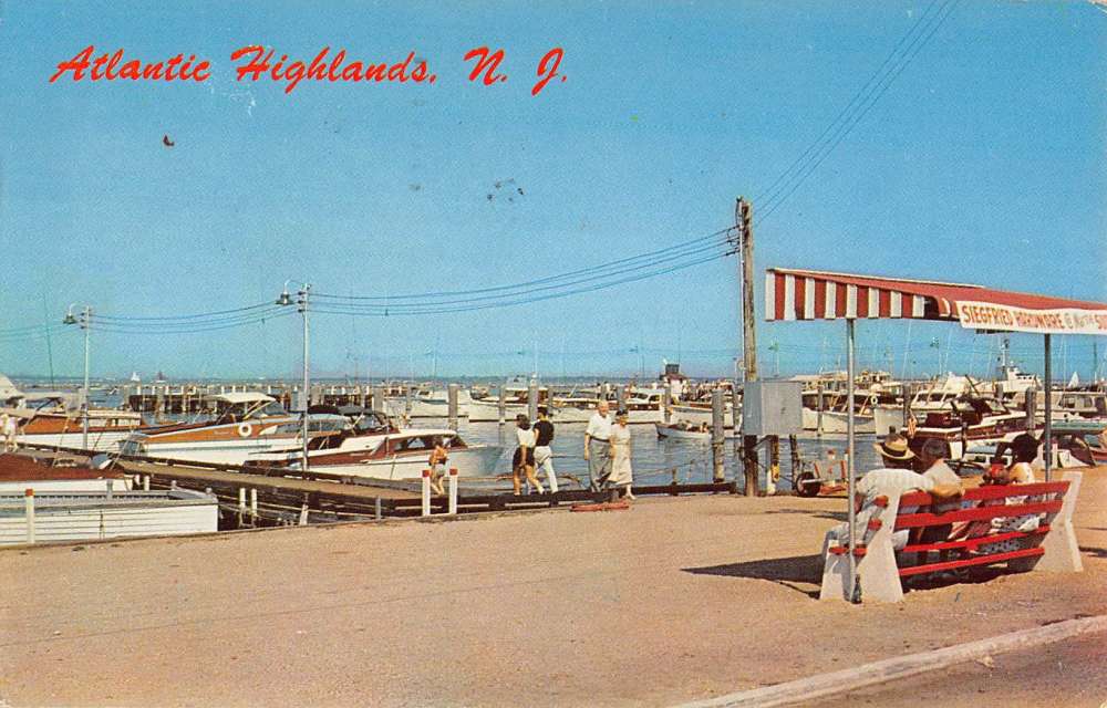 Atlantic Highlands New Jersey Yacht Harbor Street View Vintage Postcard K71828
