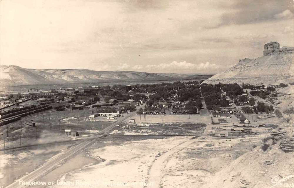 Green River Wyoming Birds Eye View Castle Rock Real Photo Postcard J61604