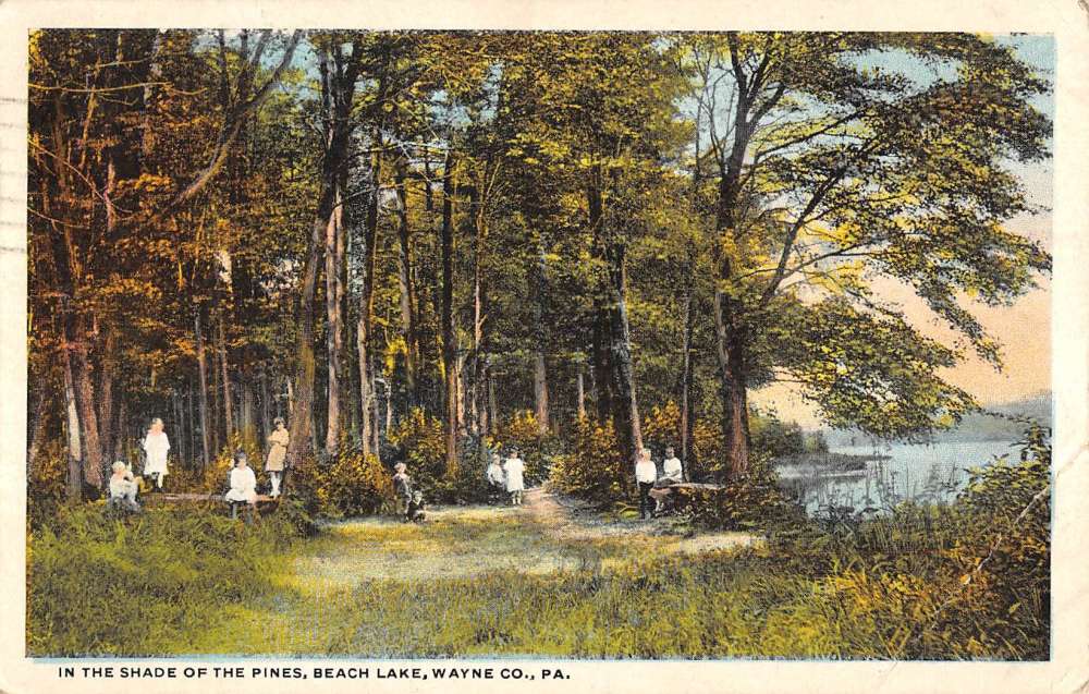 Beach Lake Pennsylvania Pine Forest Street View Antique Postcard K83588