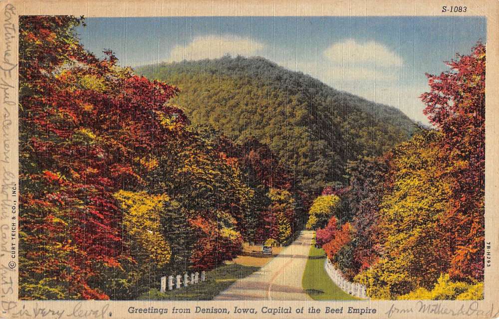 Denison Iowa Scenic Roadway Greeting Antique Postcard K83634