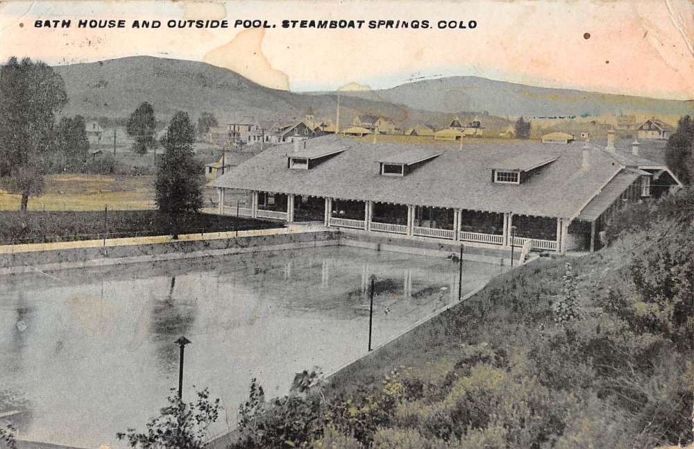 Steamboat Springs Colorado Bath House Outside Pool Antique Postcard K83646