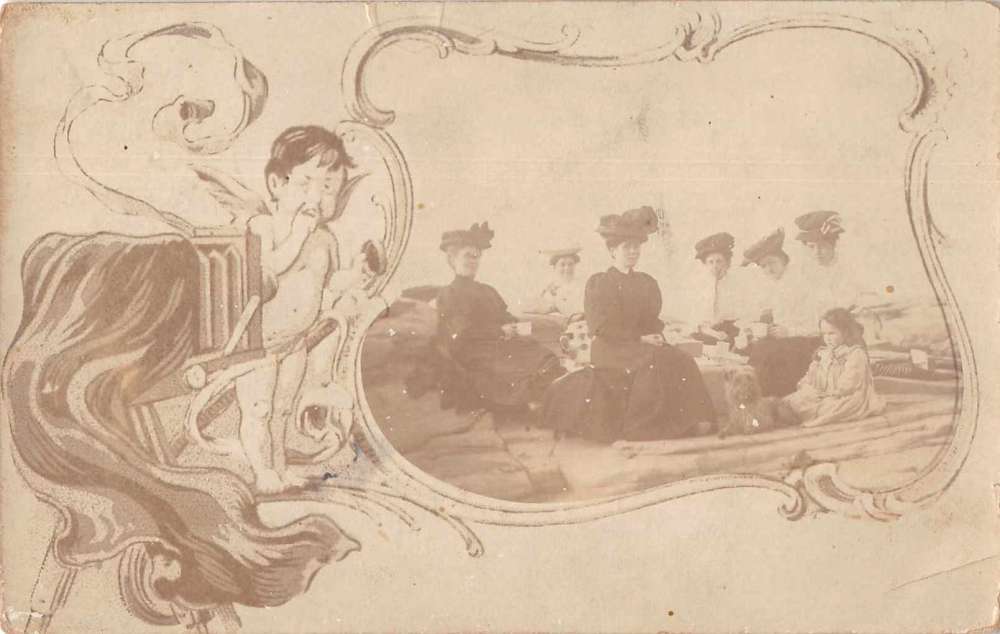 Woman having Picnic with Dog Real Photo Antique Postcard J75387