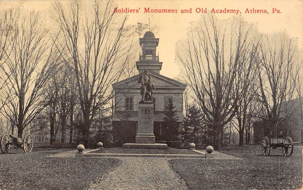Athens Pennsylvania Soldiers Monument Old Academy Antique Postcard K81501