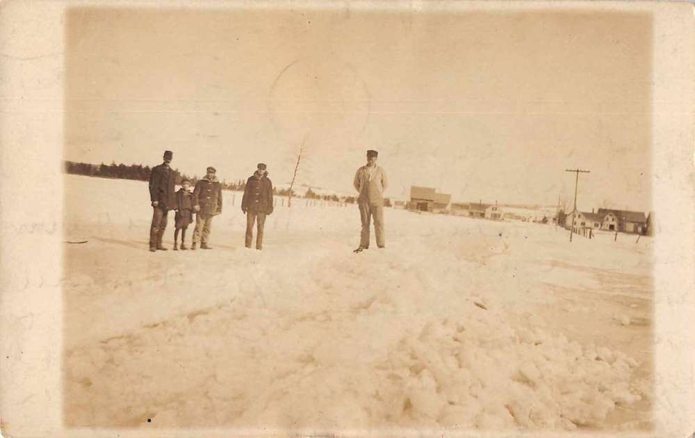 Skohegan Maine People in Snow Winter Scene Street Real Photo Postcard J73127