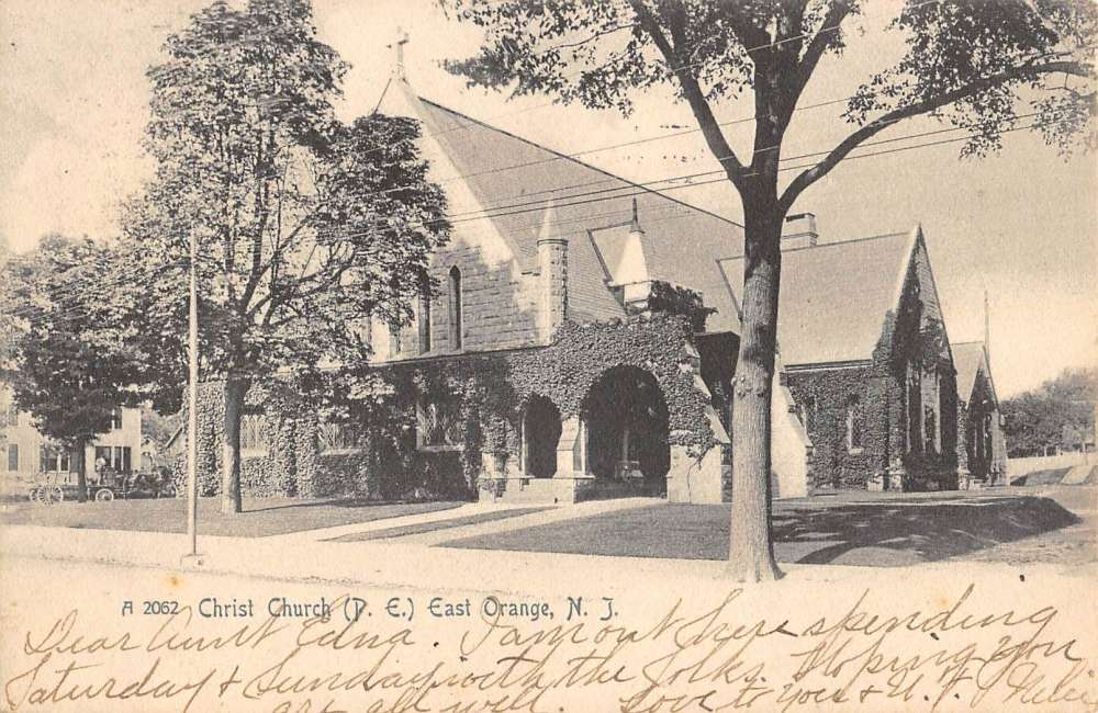 East Orange New Jersey Christ Church Street View Antique Postcard K81101