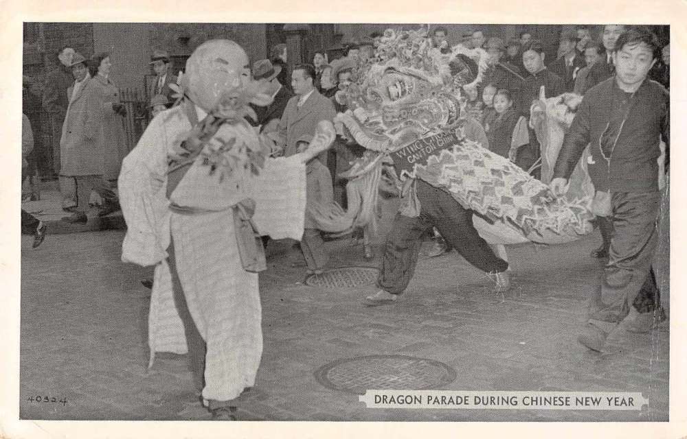 New York City Chinese New Year Dragon Parade Scene Antique Postcard J73064